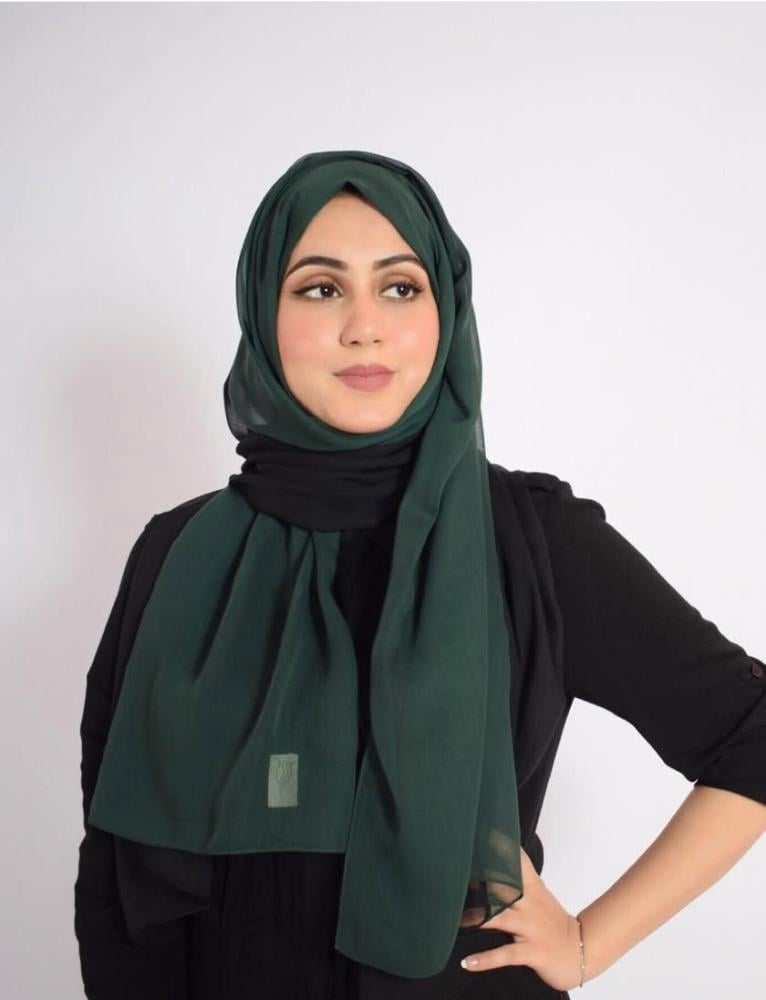 • طرحة اخضر غامق تناسب العبايات أو الأطقم الرسمية أو فساتين بسيطة